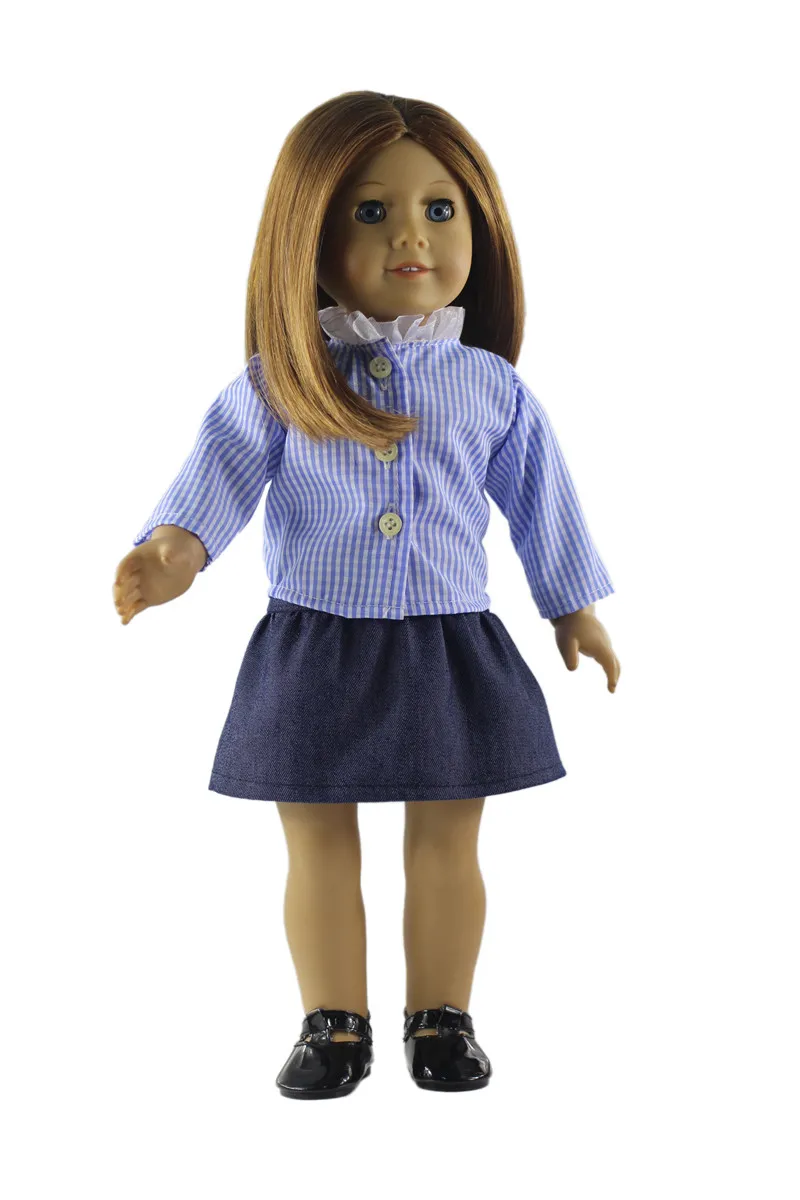 1 Zestaw = Sprawdzone Koszulę Z Długim Rękawem + Spódnica Mini (Nie Obejmują Lalki I Buty)