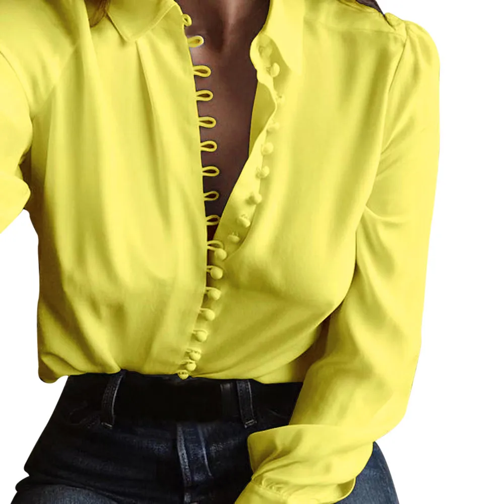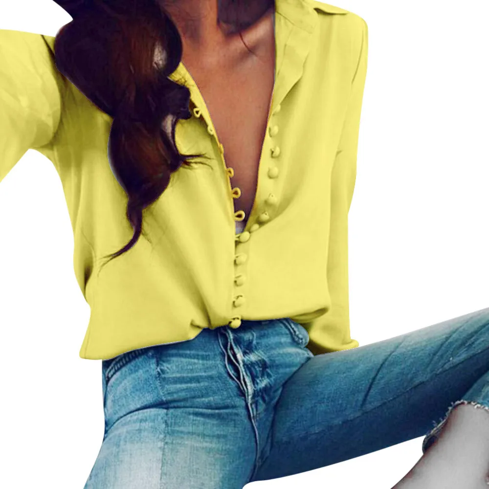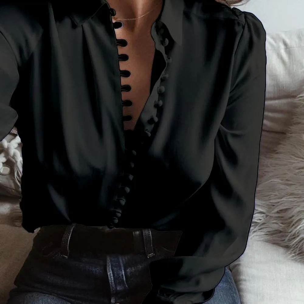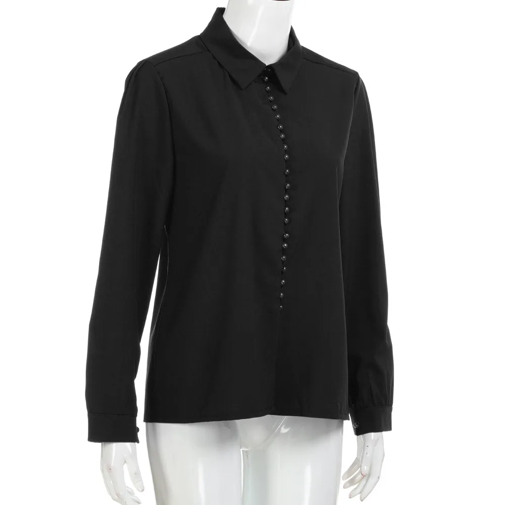kobiety Lato Biały Czarny Bluzka Dorywczo Luźne koszule z długimi rękawami klapy jednorzędowy koszula Jesień Szyfonowa Koszula Wzburzyć Góry Camisas.2