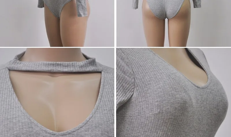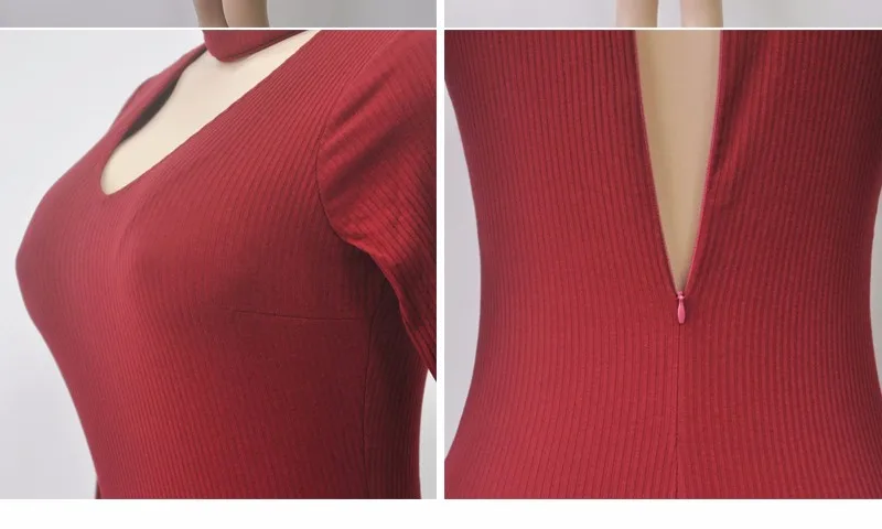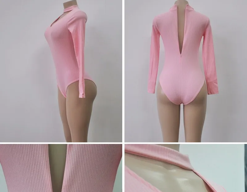 Kreska:Sibybo Sexy Body Kobiety 2018 Halter Dzianiny Jesień Zima Czarny Slim Bodycon Kombinezon Romper Kobiet Serek Kombinezon Topy