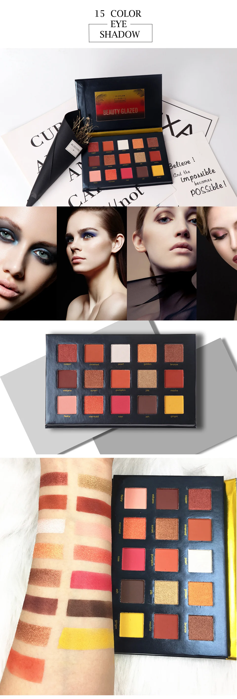 PIĘKNO SZKLIWIONE Naturalne Oczy Makijaż Łatwe Do Noszenia Eyeshadow Naturalne Matte Shimmer Paleta długotrwały Cień Do Oczu 15 Kolory w 1