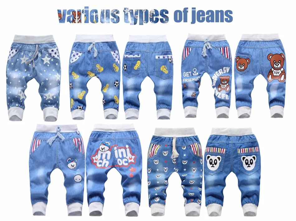 gorąca Wyprzedaż! 2016 New Kids Jeans Elastyczny Pas Proste Niedźwiedź Wzór Siódmy Spodnie Chłopiec Detaliczna Jeansy Denim Dla 2-5 Lat WB142