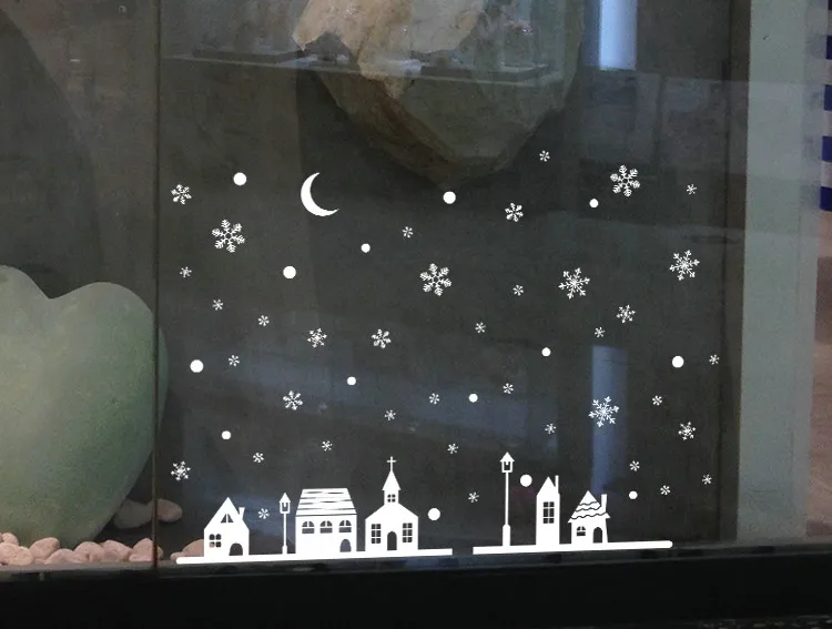 boże narodzenie Sklep Okna Dekoracje Ścienne Naklejki Świąteczne Płatki Śniegu Town