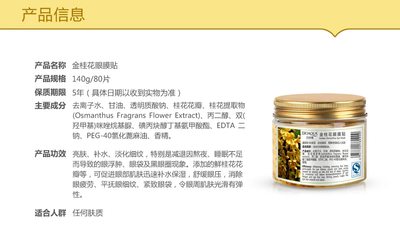 Złota Osmanthus Przeciw Zmarszczkom Ageless Eye Mask Maska Snu Obturatory Ciemne Koła Pielęgnacja Twarzy Maska Do Pielęgnacji Skóry Twarzy wybielanie 80 sztuk